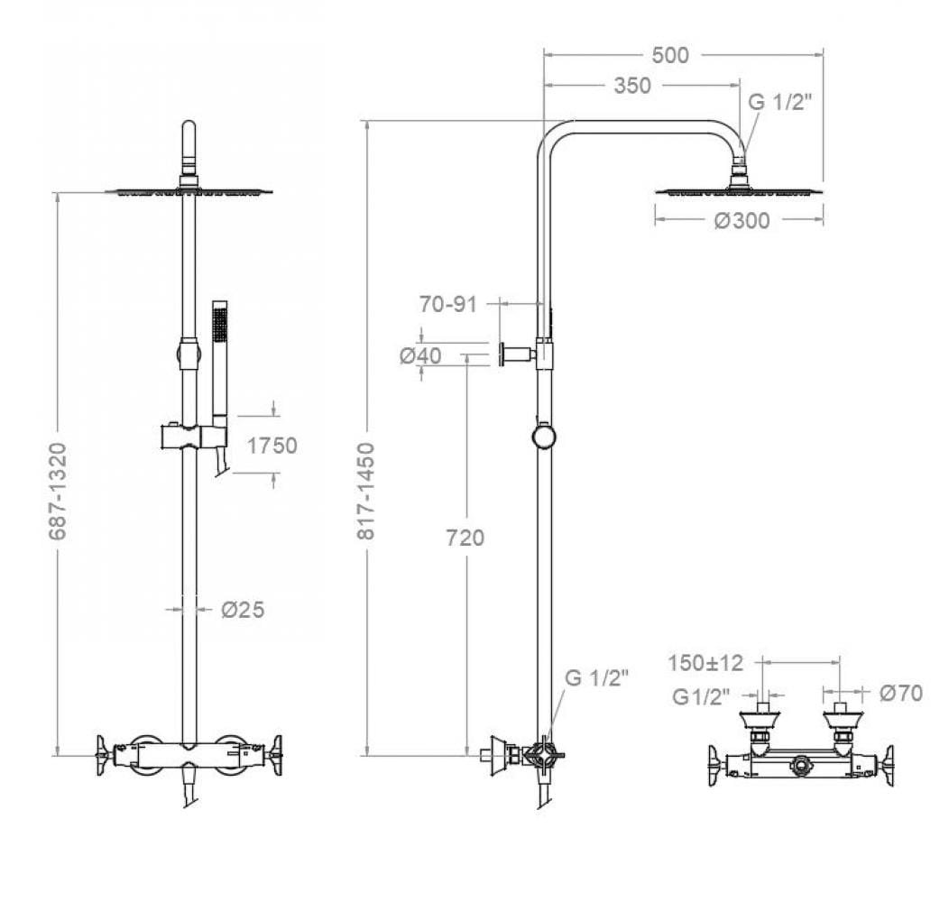 Columna de ducha telescópica termostática con rociador metálico 300mm y equipo de ducha. Acabado: Cromo, Negro Mate y Oro Cepillado.