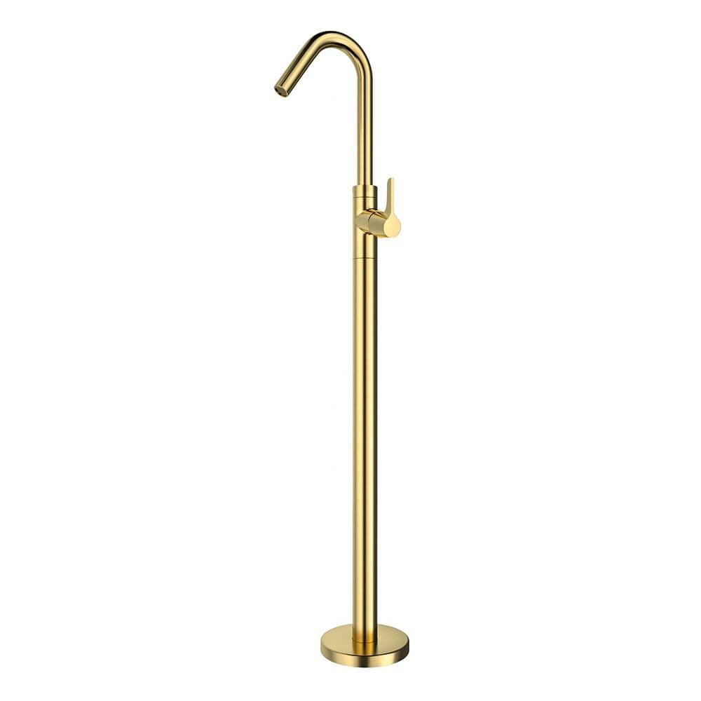 Grifo de pie de línea esbelta, monomando de lavabo, con sistema de anclaje al suelo resistente. Acabado: Cromo, Negro Mate y Oro Cepillado.