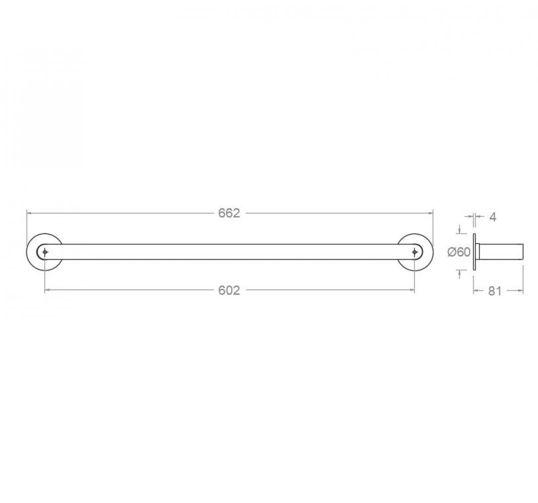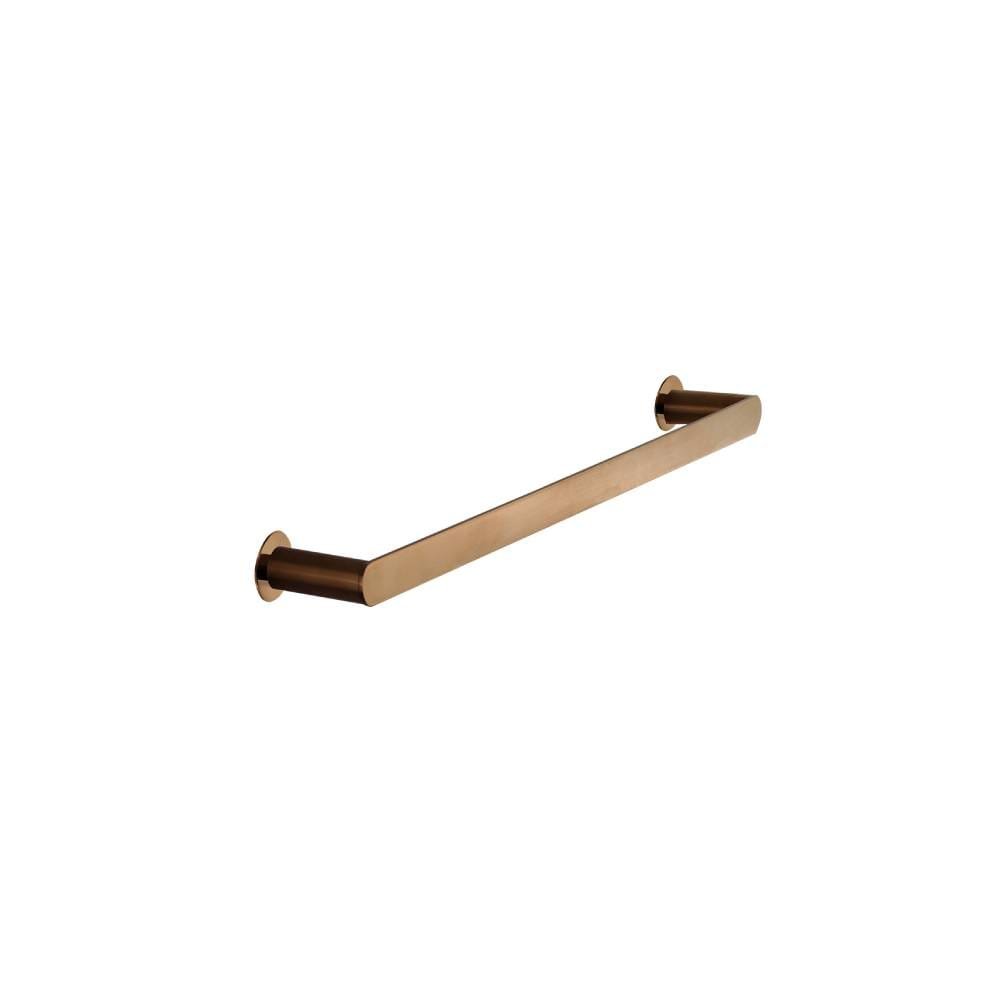 Toallero de pared para baño. Longitud: 627 mm. Diseño minimalista. Sistema de instalación dual: Fijación mecánica de tornillos a pared y/o fijación adhesiva con pegamento Sealant Fix. Acabado: Cobre Cepillado, Cromo, Negro Mate, Níquel Cepillado y Oro Cepillado.