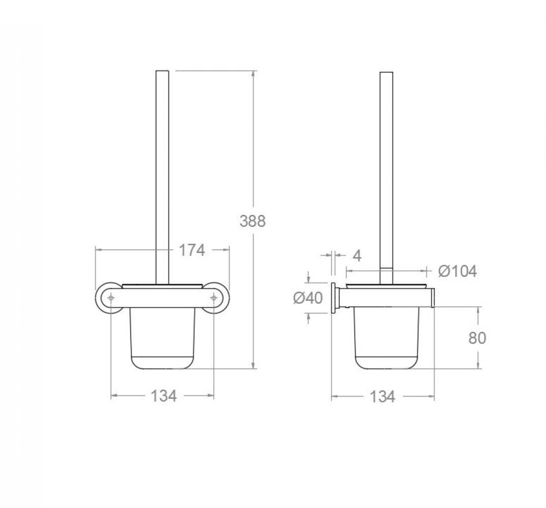 Escobillero de pared para baño de diseño minimalista con sistema de instalación dual, fijación mecánica de tornillos a pared y/o fijación adhesiva con pegamento Sealant Fix. Acabado: Cobre Cepillado, Cromo, Negro Mate, Níquel Cepillado y Oro Cepillado.