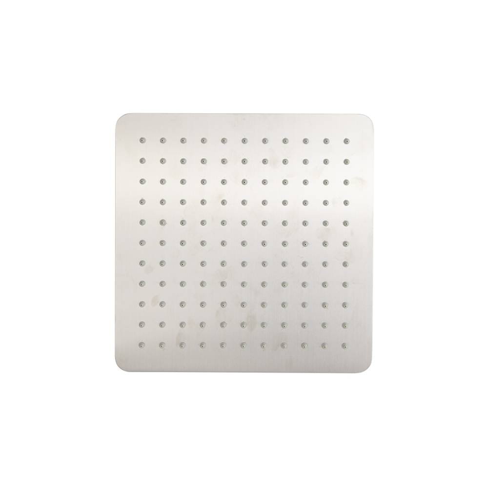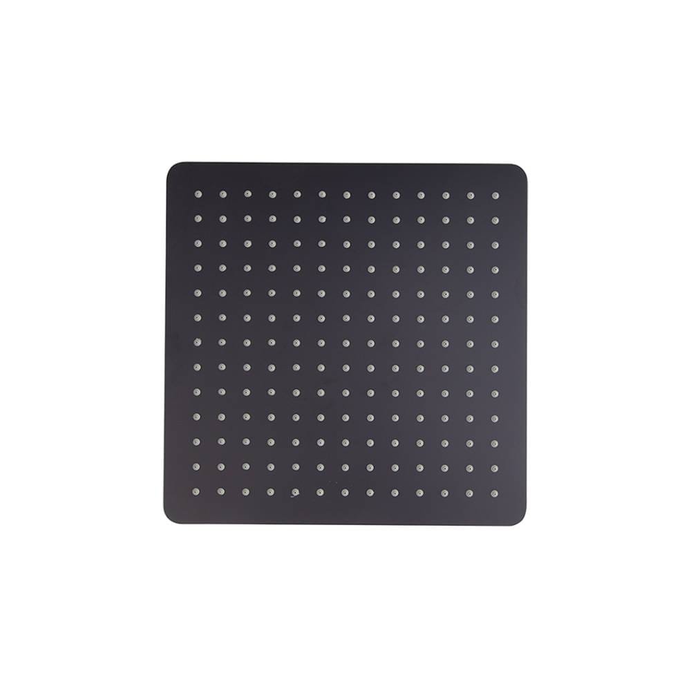 Rociador de ducha metálico de gran tamaño XL de forma cuadrada de 300 mm y, con un mínimo grosor ultraslim de 2 mm, de máxima durabilidad, con limitador de caudal y sistema anti-cal gracias a sus boquillas flexibles de silicona. Acabado: Cromo, Negro Mate, Níquel Cepillado y Oro Cepillado.