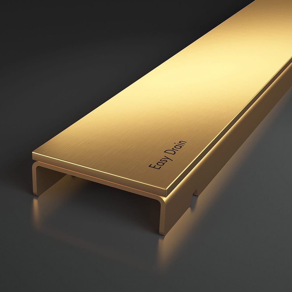Rejilla para coladera fabricada en acero inoxidable cepillado. Incluye marco TAF (Tile Adjustable Frame). A completar con cuerpo de coladera M1-30 o M1-50. Acabado: Gold. Longitud: 60 cm.