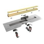 Columna telescópica termostática con ducha de mano y rociador metálico 300 mm, cartucho termostático con sistema Hot Block de seguridad antiquemaduras y sistema Termostop de bloqueo de temperatura. Acabado: Cobre Cepillado, Cromo y Oro Cepillado.