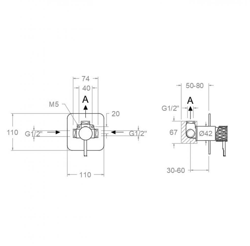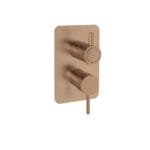 Grifo de ducha empotrado 1 vía con placa metálica extraplana, de instalación sencilla y gran durabilidad por su cuerpo compacto. Acabado: Cobre Cepillado, Cromo y Oro Cepillado.