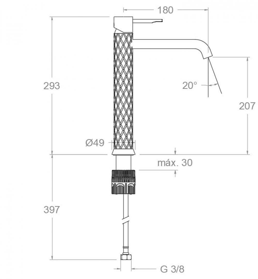 Grifo de lavabo altura XL, con caudal limitado 5L y sistema Tool Free patentado para una fijación rápida y segura. Acabado: Cobre Cepillado, Cromo y Oro Cepillado.