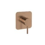 Grifo monomando de ducha empotrado de 3 vías con placa metálica extraplana, sistema S2 de ahorro de agua del 50% y limitador de temperatura. Acabado: Cobre Cepillado, Cromo, Negro Mate y Oro Cepillado.