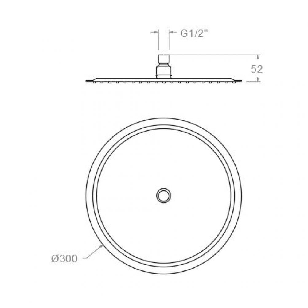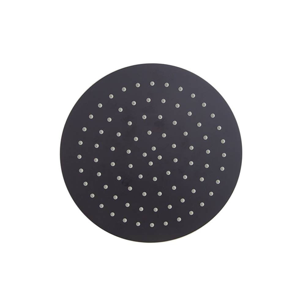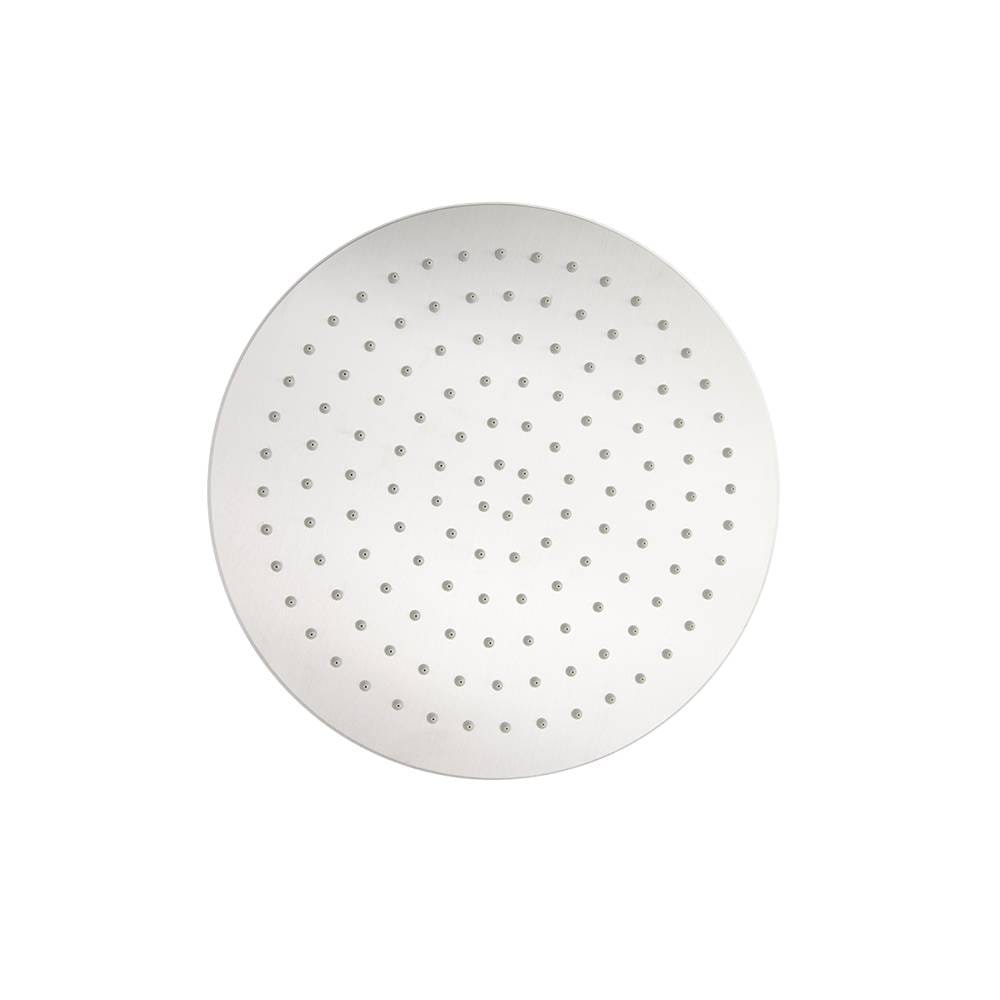 Rociador de ducha redondo Ø300 mm de acero inoxidable, con un mínimo grosor ultraslim de 2 mm, de diseño minimalista, de máxima durabilidad. Limitador de caudal y sistema anti-cal gracias a sus boquillas flexibles de silicona. Acabado: Cobre Cepillado, Cromo, Negro Mate, Níquel Cepillado y Oro Cepillado.