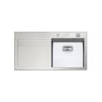 Fregadero Rodi Glass 105. Cubeta izquierda escurridor derecha. Cubierta de vidrio templando. Acabado: Inox Satinado-Blanco e Inox Satinado-Negro.