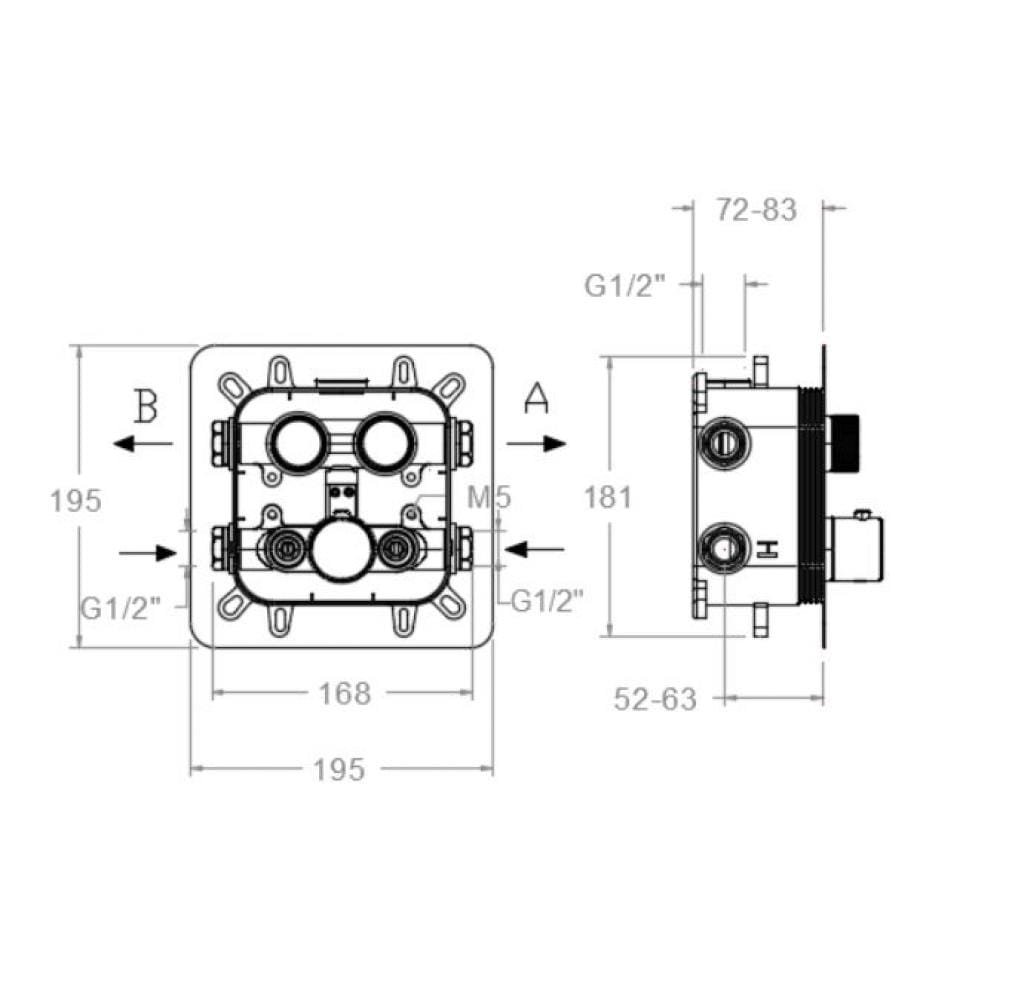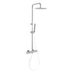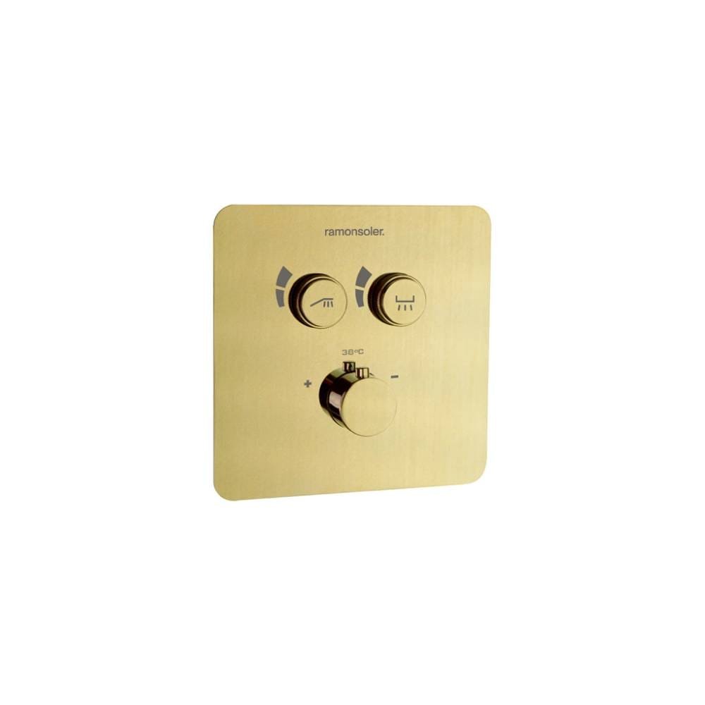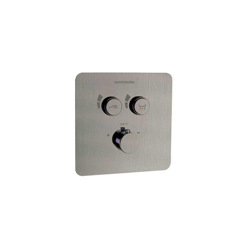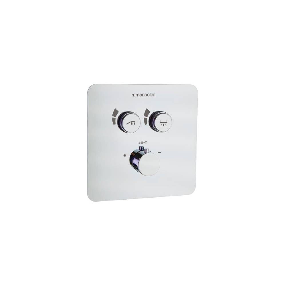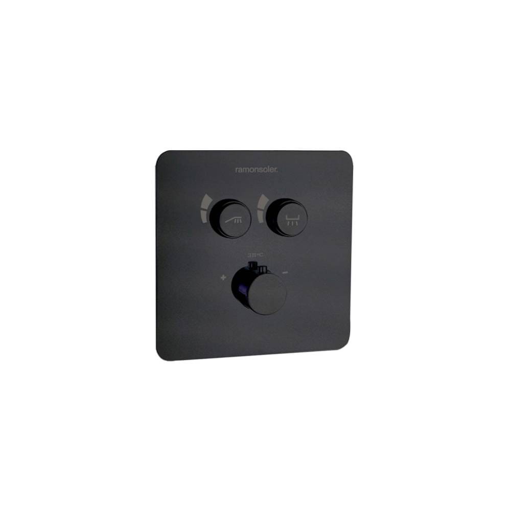 Blautherm, conjunto termostático empotrado metálico 2 vías con soporte, toma de agua, teleducha y rociador redondo. Acabado: Cromo, Negro Mate, Níquel Cepillado y Oro Cepillado.