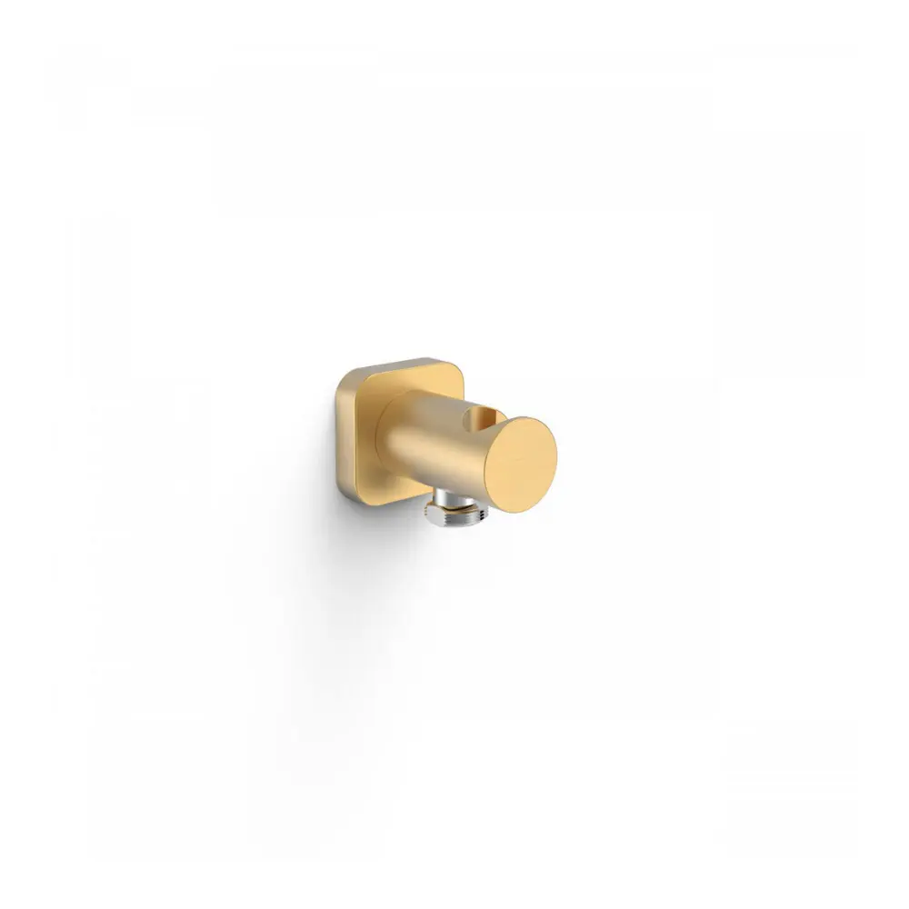 Soporte fijo con toma de agua para ducha de mano y flexo. Válvula antirretorno. Acabado: Acero, Blanco Mate, Cromo, Negro Mate y Oro Rosa 24K.
