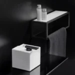 Toallero con repisa/container. Medidas: 350 x 110 x 110 mm. Acabado: Negro Mate.