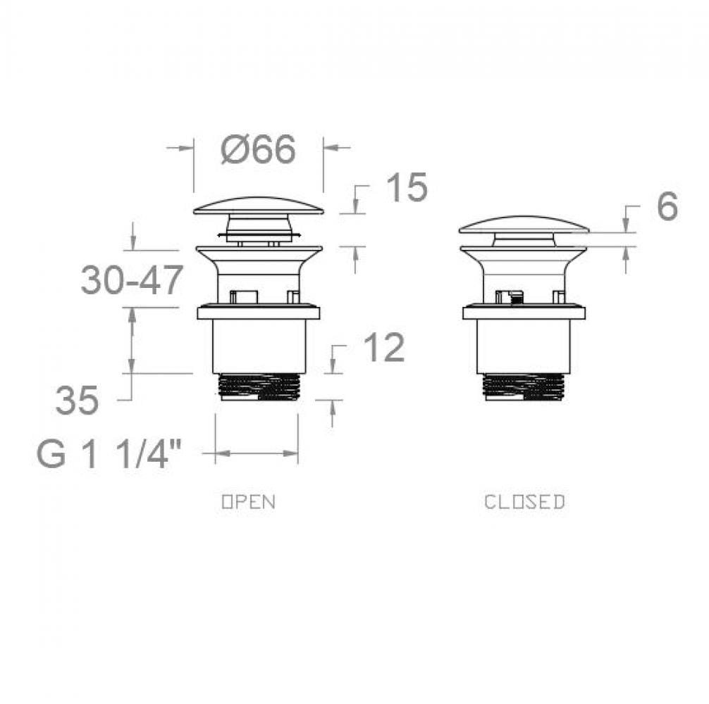 Válvula de PVC para desagüe sistema Click-Clack. Acabado: Cromo.